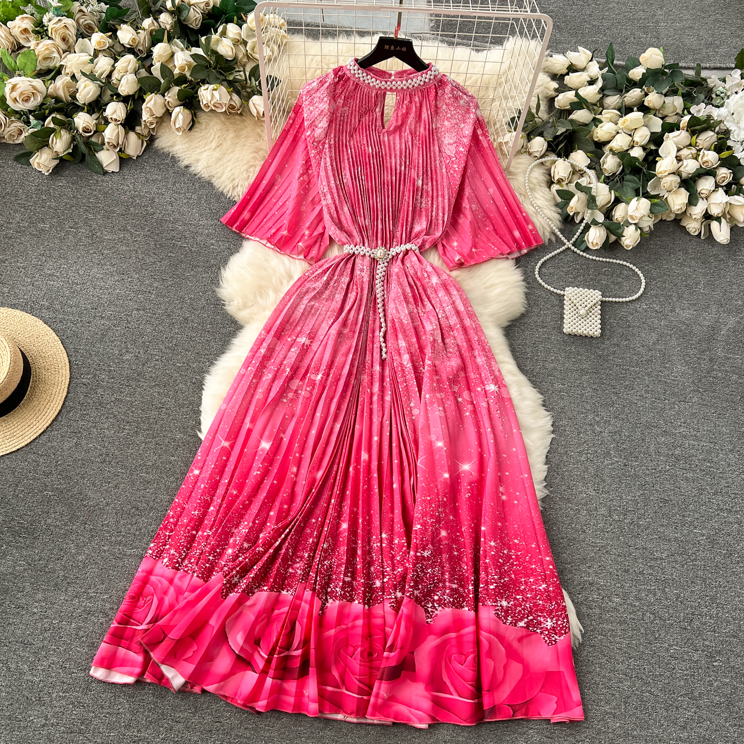 Step into luxury with our European Style Plus-Size Printed Heavy Beaded Pleated Long Dress โ a true masterpiece designed to celebrate curves with grace, glamour, and confidence. This statement piece effortlessly blends timeless European fashion with intricate details and a flattering silhouette made for real women.